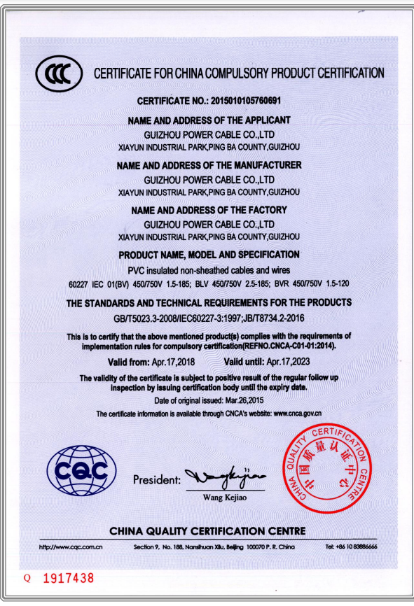 CCC產品認證證書